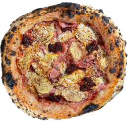 Bio drvené paradajky, nduja, mozzarella fior di latte, prosciutto cotto, čerstvý ananás, olivový olej